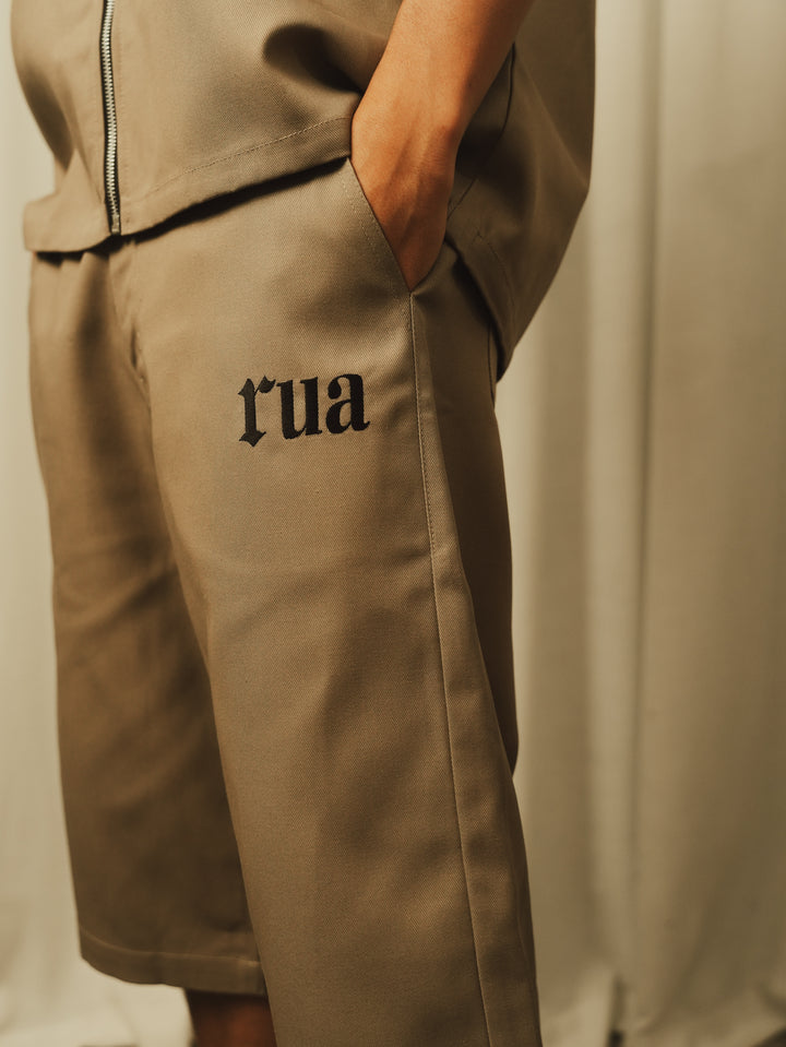 The Rua Shorts blend tailoring with utility, the front pleat adds refined structure while the elastic rear waistband keeps the fit easy, adaptable, and comfortable all day.